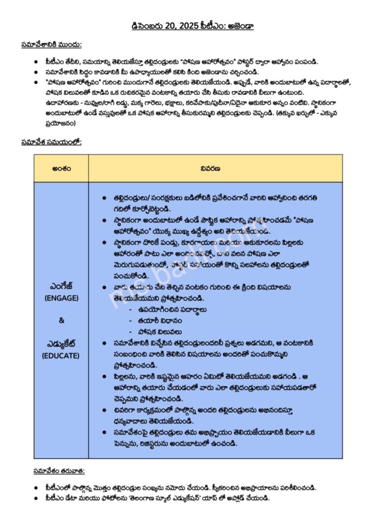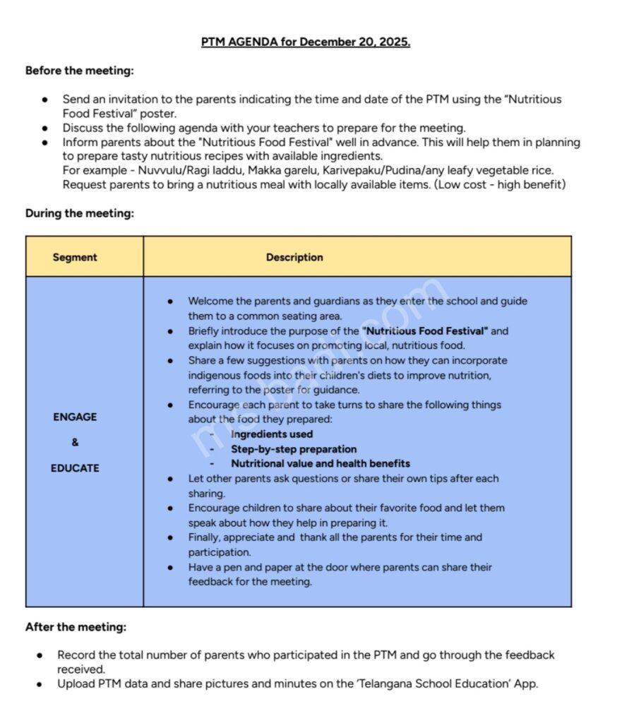 DECEMBER MONTH 2025 PARENT TEACHER MEETING DOWNLOAD INVITATION CARDS MEETING AGENDA TELUGU ENGLISH