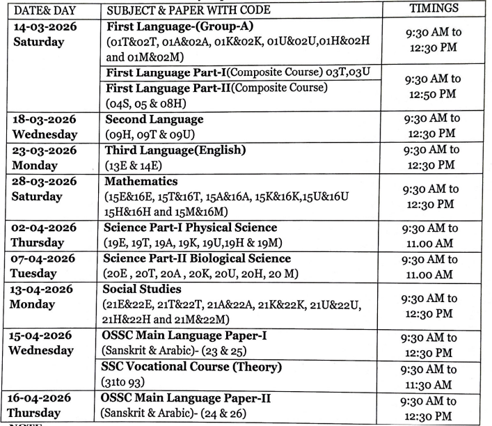 SSC EXAM TIME TABLE MARCH-2026