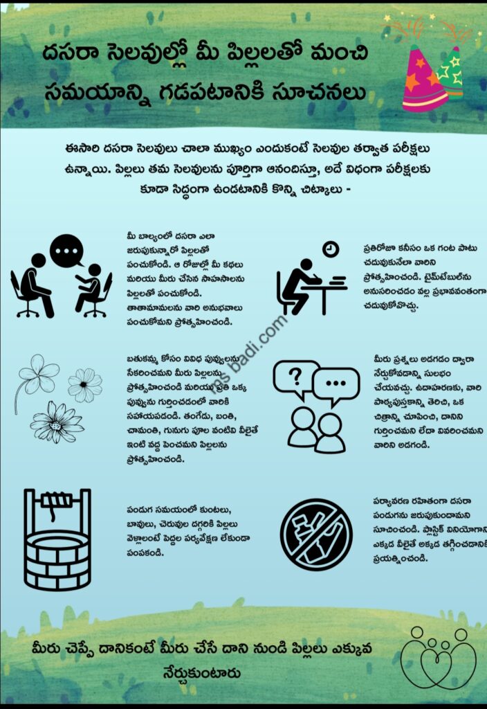 దసరా సెలవుల్లో మీ పిల్లలతో మంచి సమయాన్ని గడపటానికి సూచనలు:-
